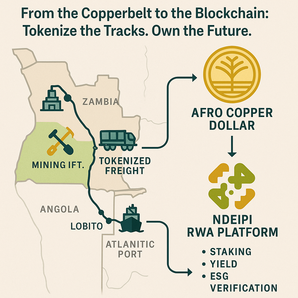 The Lobito Corridor can become the first railway in the world where every kilometer, every ton of copper, and every carbon credit is recorded and traded on-chain. Through tokenization, ownership and financing of the railway’s development could shift from a few institutional backers to a global marketplace of micro-investors. Each stake, represented as an NFT or fractional token, would represent real-world infrastructure—backed by copper flow, carbon offsets, and transport fees.