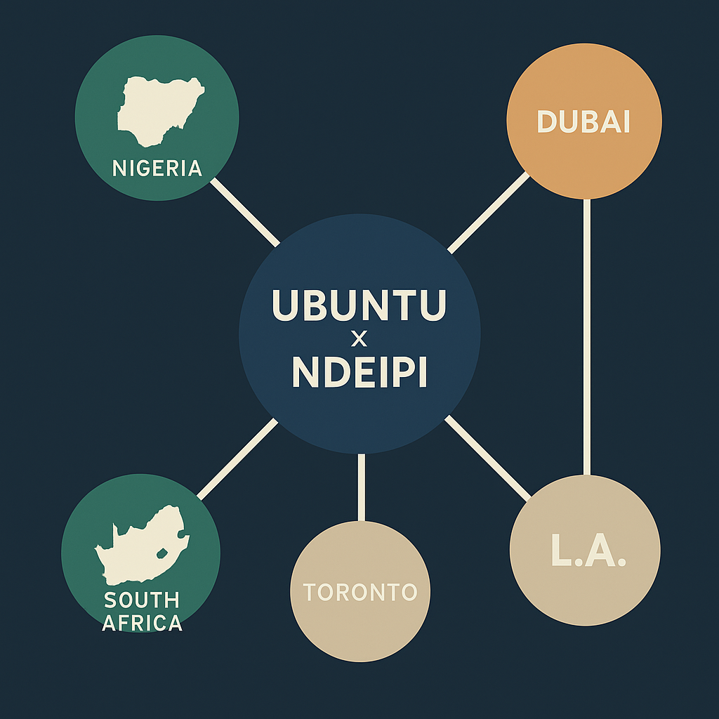 Imagine if South Africa and Nigeria worked together—not in rhetoric, but in code, contracts, and shared value. It’s not a wild dream anymore. Ubuntu and Ndeipi are quietly building the connective tissue between Africa’s power centers—Cape Town, Joburg, Harare, Lusaka, Lagos, Accra, and Dakar—with Dubai, Toronto, and Los Angeles plugged in as global relays.
